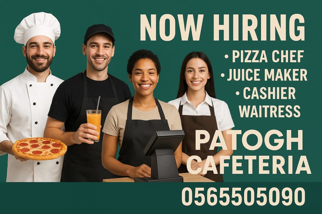 We are hiring a pizza chef, a cashier and waitress for a new cafeteria located in Meydan, Dubai