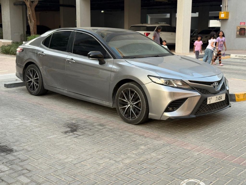 Toyota Camry Hybrid 4-cylinder 2.4L 2019 model with GCC specifications in showroom condition, free from defects. Price: 49,000 AED negotiable. Odometer: 140,000 km. Car features: Anti-lock braking system - Air conditioning - Aluminum wheels - AUX/Audio input - Bluetooth - CD player - Cruise control - Climate control - Fog lights - Keyless entry - Navigation system - Parking sensors - Central locking - Power mirrors - Power steering wheel.