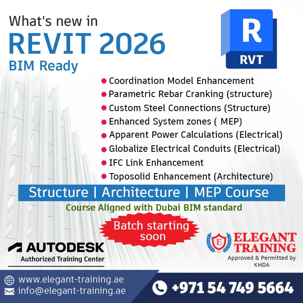 Learn Revit with Elegant Professional and Management Dev. Training and explore all the different functions and features of various Revit modules such as MEP, Structure and Architecture. This program follows real project processes and workflows in order to make sure that you are familiar with the Revit tools. Here, the instructors follow real - world techniques and examples. You will learn about the