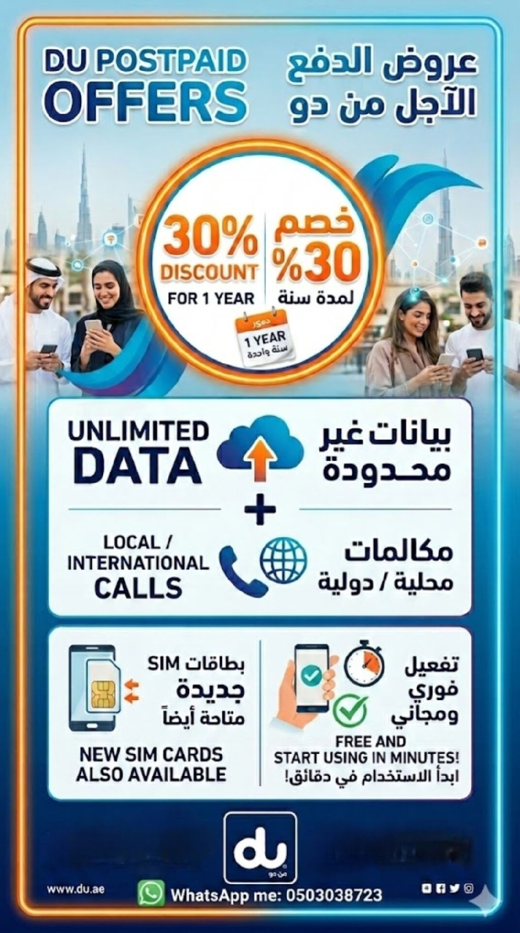 عروض دو للدفع الاجل خصم 30% لمدة عام بيانات ومكالمات غير محدودة (محلية ودولية) تفعيل فوري مجاني، شرائح SIM جديدة متوفرة - اتصل