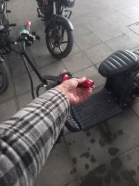 I have a scooter for sale for 500 dirhams. It comes with a new battery, a new speed cable, a free headset, and a charging cable. Located in Al Satwa