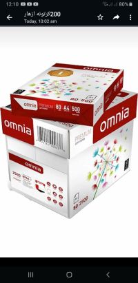 متوفر ورق تصوير A4 أمنية Omnia - وزن 80 جرام جودة ممتازة للطباعة والتصوير، مناسب للمكاتب، المدارس، الشركات، والمطابع. ورق ناصع البياض لا يعلق في الطابعة جودة عالية للطباعة في الالوان والأسود سعر جملة توصيل مجاني لجميع الامارات