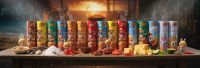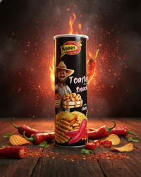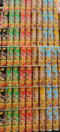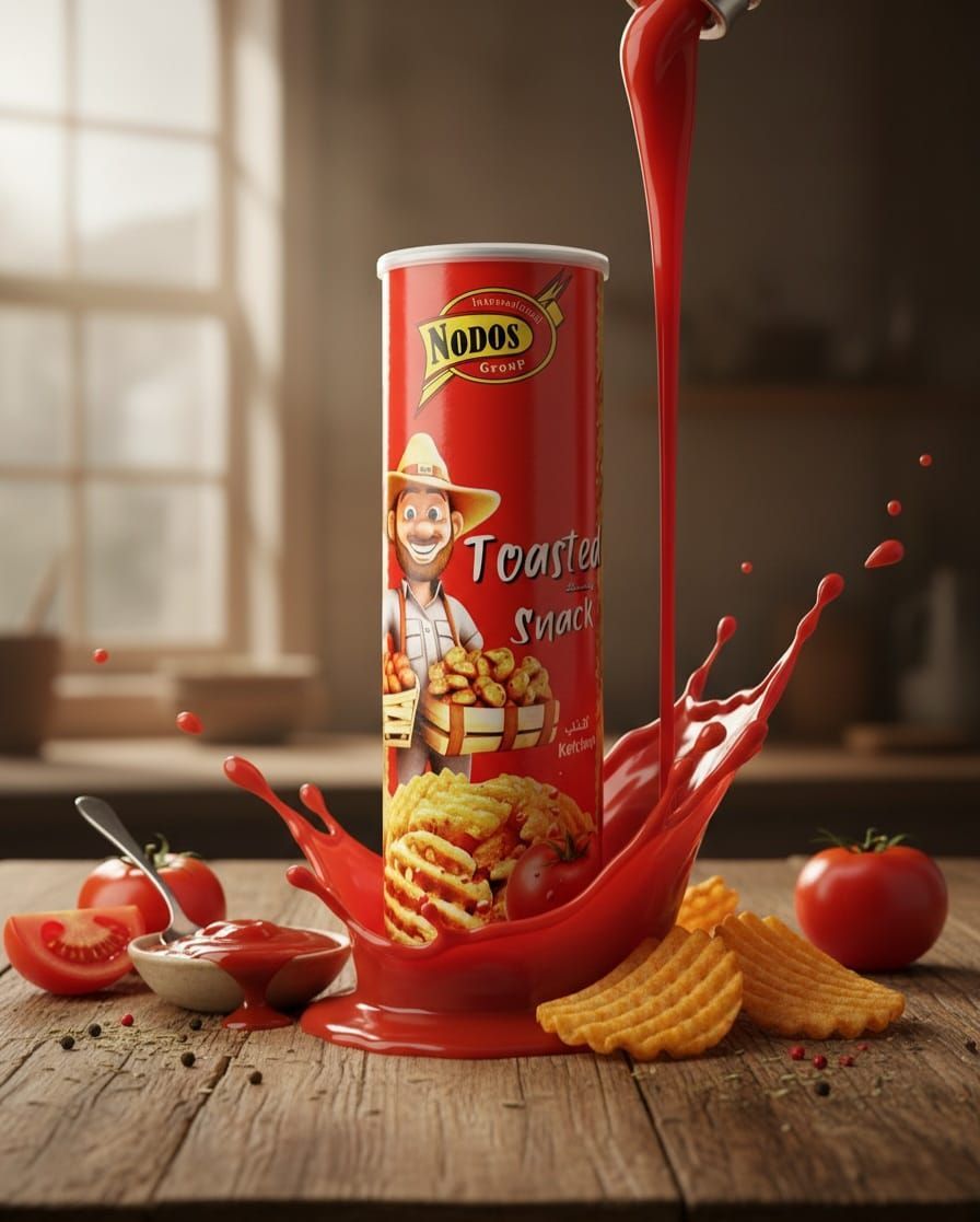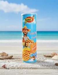 Nodos. Introducing the latest trend in snacking crispy roasted chips, packed in a large, attractive family sized can. These chips offer unparalleled crunch, superior freshness, and convenient eating. Flavors Cheese, BBQ, Noodles, Ketchup, Sea Salt, Chili, Lemon and chili, Hot fire Chili. Made in UAE, 1 box 12 pc x 90g)