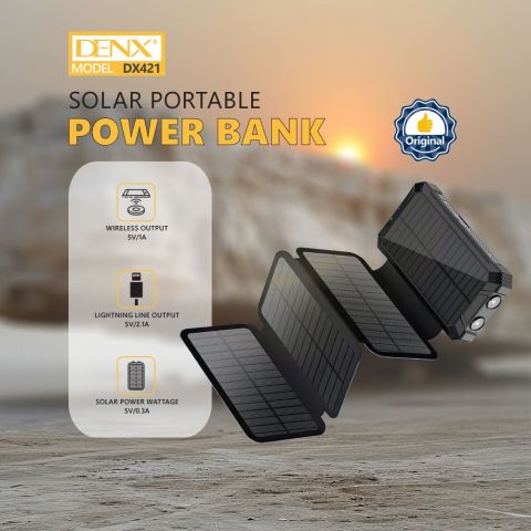 Features 1 Massive 20000 mAh Capacity Enough to charge your phone multiple times, keeping you connected and using your devices. 2 Wireless + Wired Charging Place your phone on top for wireless charging, or use the multiple ports for fast charging. 3 Solar Backup Even without electricity, the sun will power it wherever you are. 4 Multiple Ports to Fit All Devices USB, Type - C Lightni