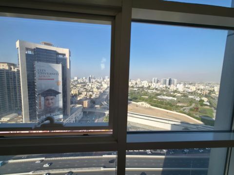 غرفة وصالة اطلالة جانبية في السيتي تاور مساحة 757 قدم مع موقف مع بلكونه مقدم 200 اجمالي 365 باقي 165 ألف فاضية استلام فوري