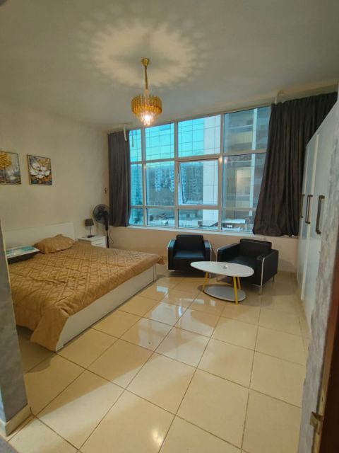 Furnished studio apartment for monthly rent in Ajman Directly on Ajman Corniche Near all services, restaurants, cafes, and bus station Includes all bills, internet, and parking Close to Mina Street and Sheikh Hamid Street Close to the Sharjah and Dubai exit Refundable security deposit of AED500 upon departure