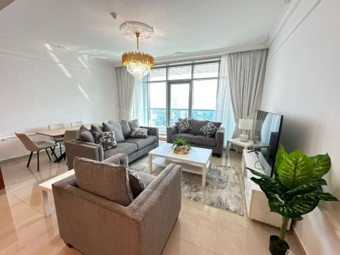 The most beautiful two - bedroom apartment with a hall and three bathrooms, with a balcony, furnished with very elegant hotel furnishings, a distinctive view, and an easy - to - access location to Sharjah and Dubai, close to all services. Ajman - Corniche - Behind the Residence Towers - AED, including all bills, internet, and maintenance - Details and Features Clean and tidy furniture