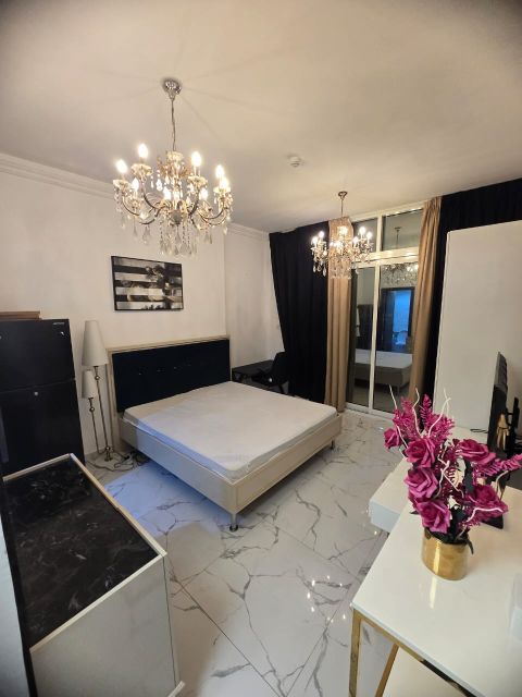 A room and a hall, the first resident in Ajman Corniche, furnished for monthly rent, including all bills, sea view, Corniche, opposite Bahi Palace, easy exit to Sharjah and Dubai, close to all services, 2 bathrooms with a large area, very close to the ship’s floor, price 5500, including all bills and internet