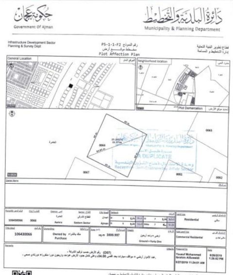أرض سكني تجاري تصريح بيع شقق للبيع في - عجمان موقع الأرض / العامرة - مدينة الامارات مساحة الأرض / 38750 قدم مربع السعر 23M درهم اماراتي نهائي التصريح / أرضي + 41 تملك حر لجميع الجنسيات