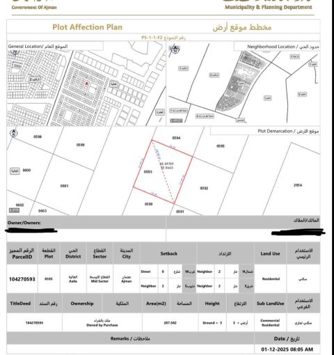 Residential plot Masfut 3 best location Residential Plot - Two Streets Masfut 3 - Near main road Ajman A great investment opportunity to own a residential plot in Masfut, Ajman Looking for land to build your private villa or holiday retreat Here is a residential plot in a strategic location in Masfut, offering you comfort, privacy, and excellent future value. Plot Size 375 SQM (4037
