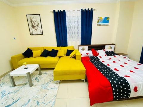 استوديو مفروش للإيجار الشهري في عجمان أبراج الياسمين مقابل سيتي سنتر عجمان الإيجار 3300 شامل الفواتير والانترنت تأمين كاش 500 درهم مستردين وقت الخروج