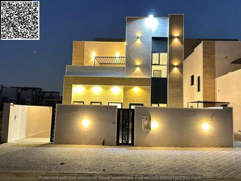 فيلا فاخرة للإيجار السنوي في عجمان في مدينة الامارات، موقع مميز بجوار منطقة أذهي وعلى بعد دقيقة واحدة فقط من شارع مدينة محمد بن زايد، تتميز بتصميم راق وتشطيبات فاخرة مع وجود رووف ومصعد خاص. تبلغ مساحة الأرض 3014 قدم مربع ومساحة البناء 5330 قدم مربع، مما يمنحك مساحة واسعة ومريحة للسكن العائلي. الفيلا مزودة بتكييف مركزي وتشطيب داخلي فاخر بأعلى المواصفات. يتكون الطابق الأرضي من صالة فسيحة ومجلس راق ومطبخ