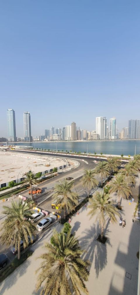 Apartment with a charming sea view and an exceptional location in front of Sharjah Corniche Bedroom Comfortable living room Bathroom Practical kitchen Free parking Central air conditioning Central gas Natural light and open view Clean and quiet family building Annual rent only 23999 dirhams Periodic maintenance 24/ 7 security guards Excellent building cleanliness Quiet and