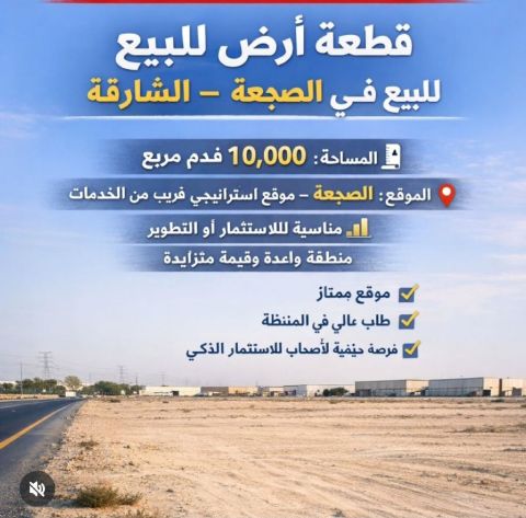 قطعة أرض للبيع 10000 قدم في الصجعة الصناعية