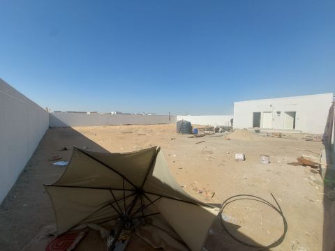 أرض حوطة للإيجار ب الصجعة الصناعية الشارقة مساحتها 60 ألف قدم بها مكتب و3 غرف وحمام ومطبخ وكهرباء 50 kv ومياه، مطلوب 660 ألف درهم