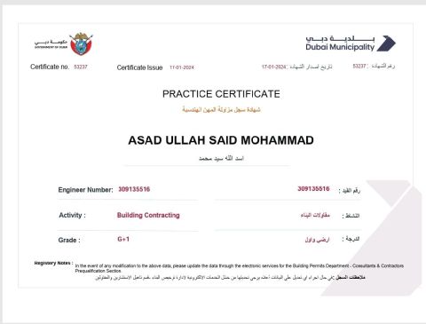 My name is Asad, and I am a civil engineer. I have the following documents for classification university degree, land survey diploma, Equivalency, G 1 card from Dubai Municipality, G 4 card from Sharjah Municipality, and an SOE card I can handle classifications for the municipalities of Dubai, Sharjah, and Abu Dhabi. If you are interested, please