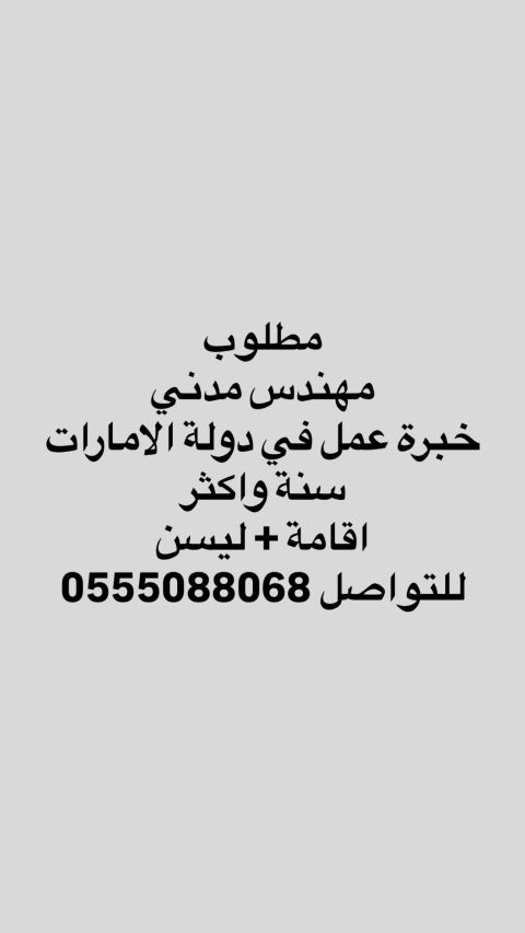 مطلوب مهندس مدني خبرة لا تقل عن سنتين وأكثر مع خبرة عمل في دولة الامارات ومع ليسن + إقامة في الشارقة للتواصل فقط ارسال أل CV على الواتساب الشارقة القاسمية