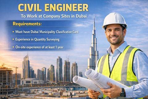 مطلوب مهندس مدني خبرة لا تقل عن خمس سنوات لديه عضوية جمعية المهندسين وإقامة صالحة للنقل ورخصة قيادة / الأولوية لمن لديه اعتماد في بلدية دبي جميرا