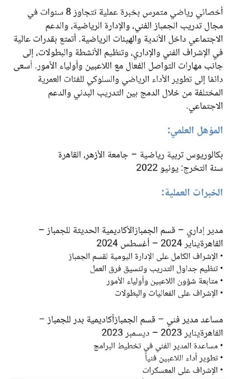 مدرب كاراتية ذو خبرة كبيرة كنت لاعب لدي الاتحاد المصري للكاراتية والآن اعمل في مجال التدريب حاصل علي بطولات عديدة اللغة العربية والانجليزية لكن ليست بنسبة كبيرة