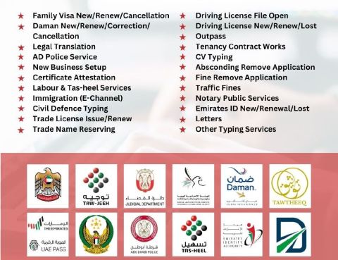 تخليص جميع المعاملات اونلاين، الجوازات تدبير تسهيل توجيه، متوفر عقود إيجار موثقه دبي وأبوظبي تجاري وسكني. تواصل معنا لخدمة مضمونه وسريعه