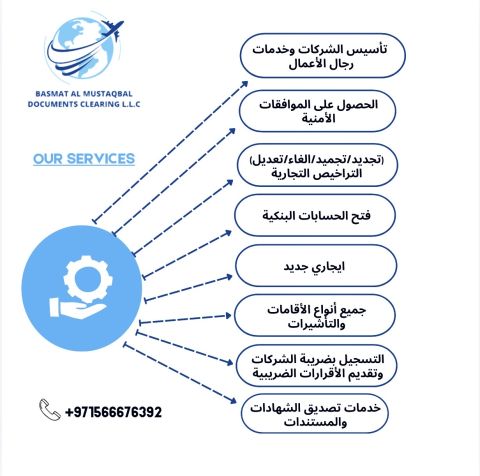 تخليص معاملات جميع أنواع الشركات مع خدمات فتح الحساب البنكي تفضل بزيارتنا في مكاتبنا الغزال، لخدمات رجال الأعمال بإدارة اماراتية
