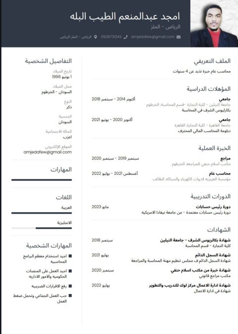 محاسب سوداني خبرة 5 سنوات اجادة العمل على معظم البرامج المحاسبية ابحث عن دوام كامل أو جزئي
