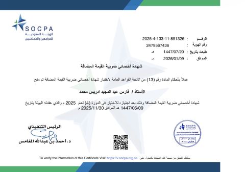 مدير مالي سوداني خبير IACPA، ماجستير، متخصص في ضريبة القيمة المضافة. معرفة قوية بالمعايير والجوانب المالية والادارية والتشغيلية. خبرة في تحسين العمليات وإدارة الفرق والتحليل والضريبة وأنظمة ERP وتحليل البيانات وإدارة المخاطر والرقابة الداخلية