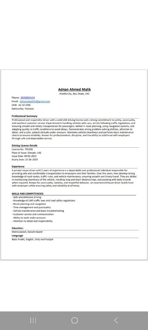I am looking job full time as a driver I have 5 years experience as a private driver and sales 3 years experience I have
