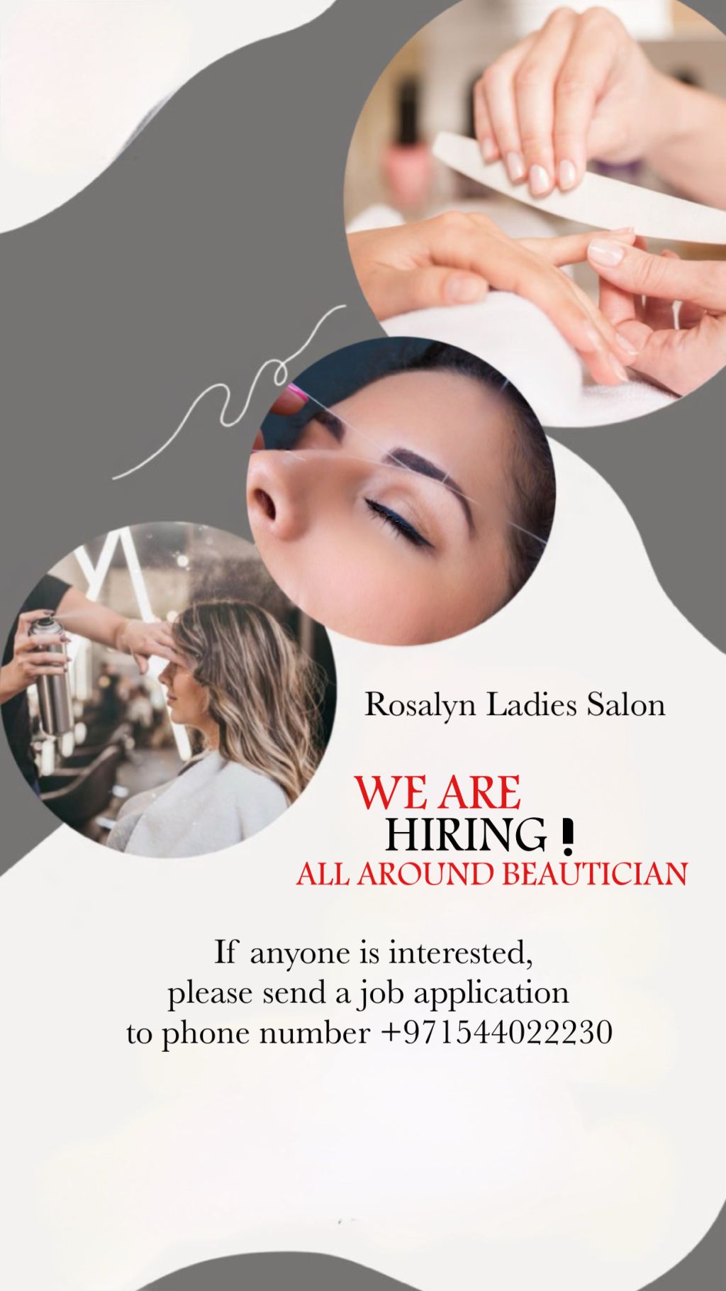 We are hiring all around beautician, if anyone is interested please send a job application to phone number, our location UAE - Fujairah City - Madhab Area