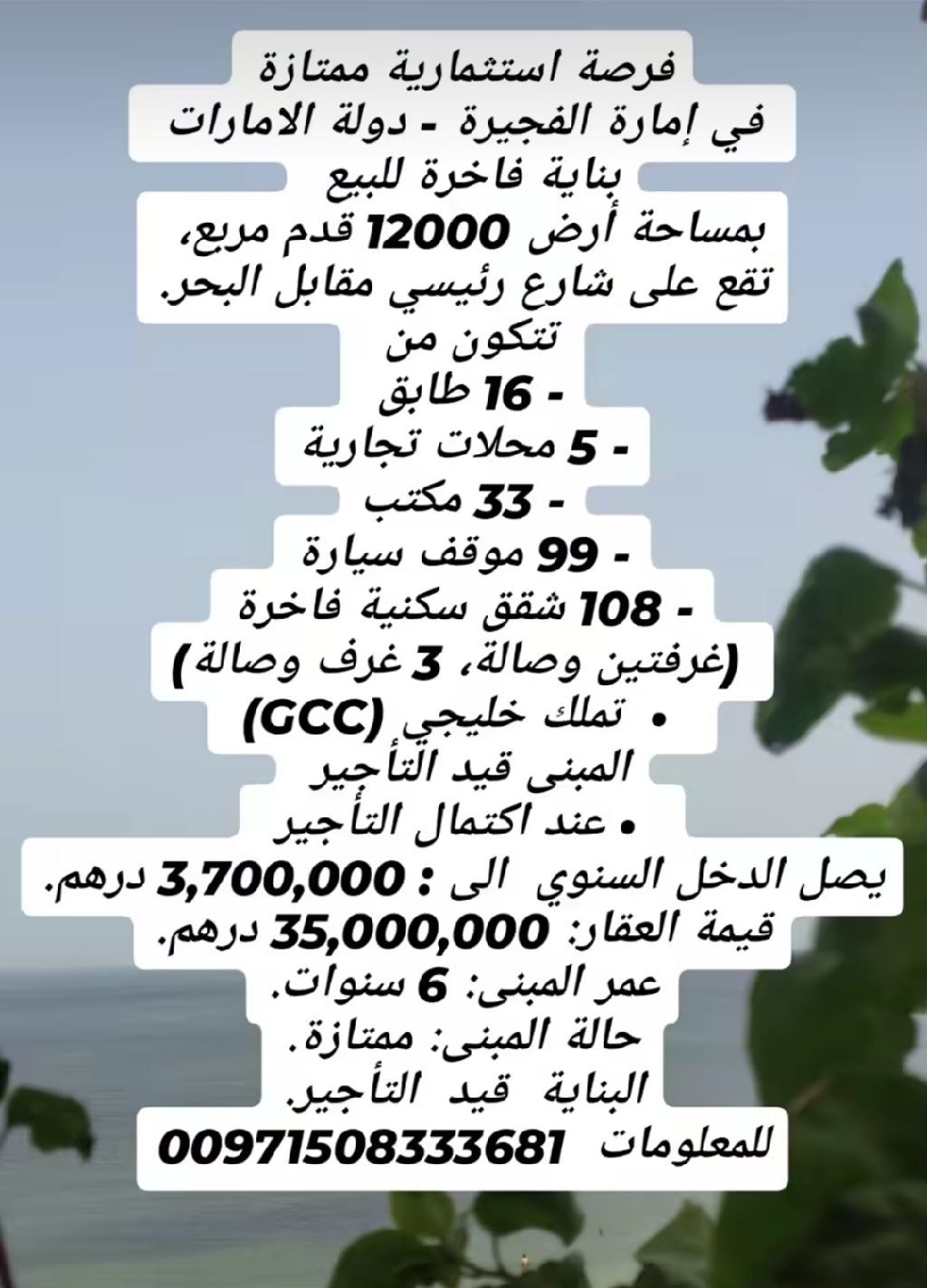 بناية ممتازة في الفجيرة شارع رئيسي كل التفاصيل في البوست