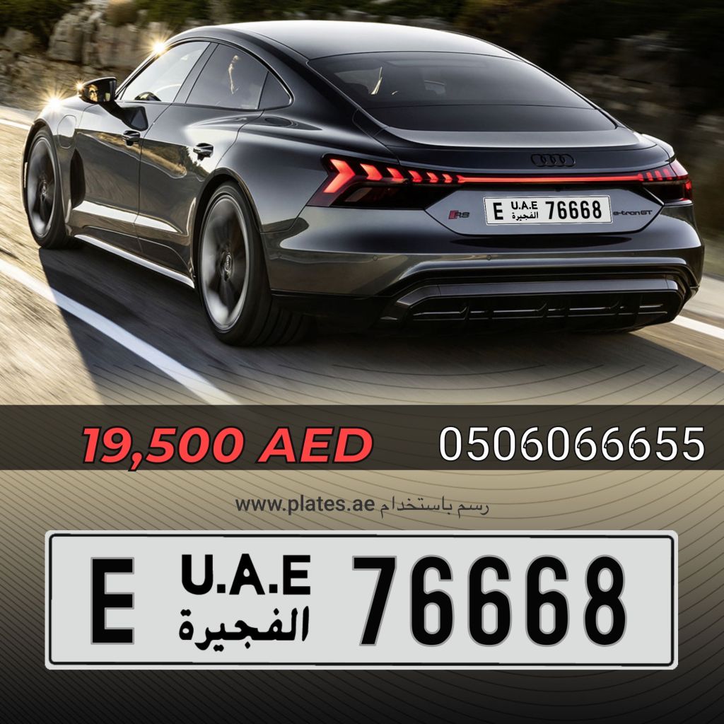 Special car plate code and number ( E 76668) with the new design of plates for the Emirates of Fujairah This number is unused and the offer price is less than the Market. Great opportunity for those who like to be special. Best Regards
