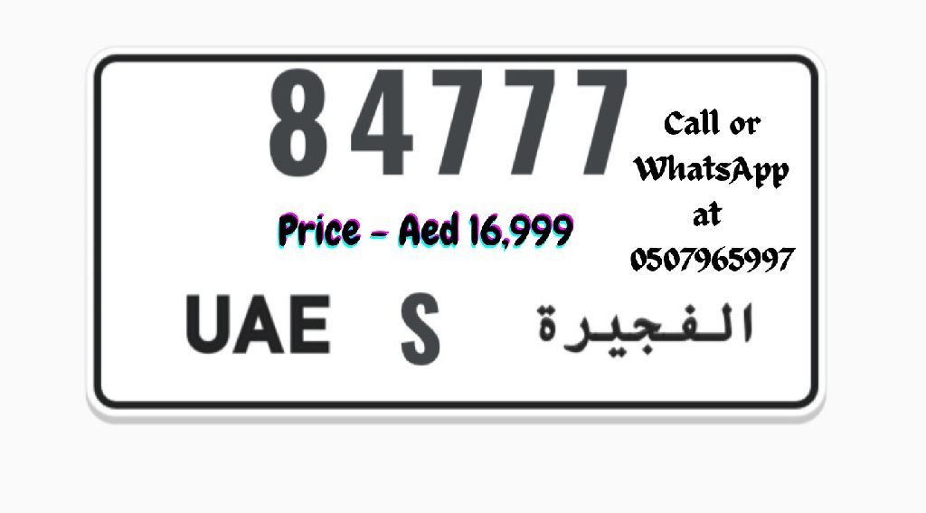 Fujairah 84777 code S Beautiful and Rare Code Plate for sale (777 James Bond 777) For Price Serious Buyers please call or WhatsApp at this