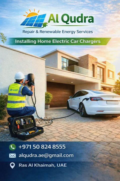 اشحن سيارتك الكهربائية من بيتك بكل أمان في القدرة لخدمات الاصلاح والطاقة البديلة نوفر لك تركيب شواحن السيارات الكهربائية في المنازل باحترافية وجودة عالية. تركيب آمن ومعتمد مناسب لجميع السيارات الكهربائية حلول ذكية ومستقبلية رأس الخيمة - الامارات