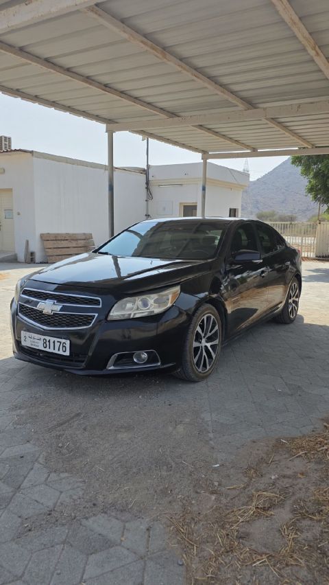 Chevrolet Malibu LTZ GCC 2013 with 3 months ownership remaining. Gulf specs, 4-cylinder, 180,000 km mileage. Full service completed with new alternator, new battery, new radiator, new tires 2025, new brakes, new shock absorbers, new joints, new axles - everything is new. Transmission, engine, chassis all in excellent condition. Full options including sunroof, fingerprint start, electric leather seats, smart entry, remote start.