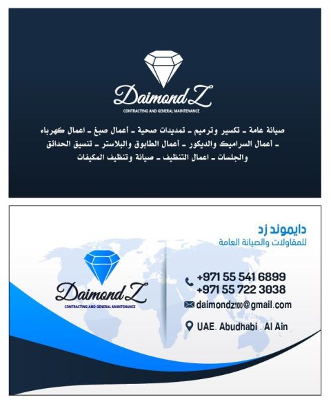شركة دايموند زد للمقاولات والصيانة العامة نبحث عن مشاريع جديدة في مجالات المقلات والصيانة، ونقدم نسبة مجزية لكل من يجلب مشروعا للشركة. خبرة واسعة في تنفيذ المشاريع باحترافية عالية التزام بالجودة