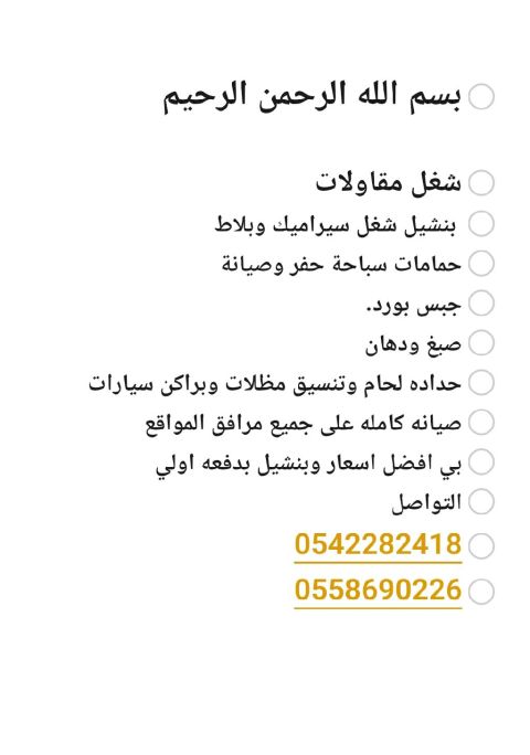 بنشيل شغل مقاولات عامة بدفعه أولي وبأفضل الأسعار