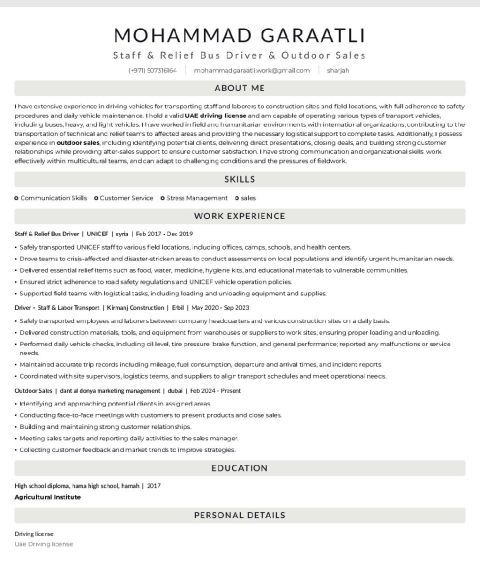 اسمي محمد رضا، ابحث عن وظيفة سائق مركبة خفيفة. لدي خبرة سنتين في الامارات العربية المتحدة