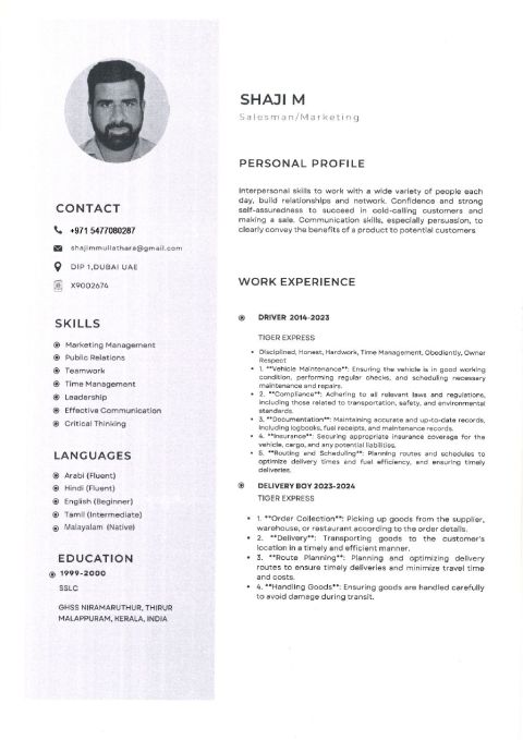 Hello sir/ Madam I hope your well This is Zain Ali I am looking job for driver I have 4 year experience as a light vehicle driver in UAE. I speak English Arabic and Hindi read rewrite everything. I know the all roads of UAE I have on my visa