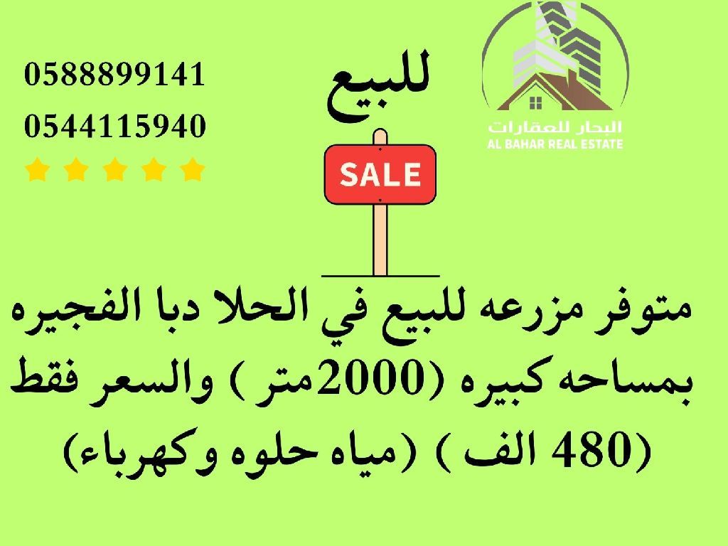 متوفر مزرعة في الحلا بمساحة كبيرة (2000 متر) بسعر لقطة 480 ألف وفيها مياه حلوة وكهرباء وبين مزارع وجبال