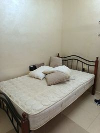 للبيع مجموعة أثاث منزلي مستعمل، بحالة جيدة ومناسبة للاستخدام المباشر، كما هو موضح في الصور. المحتويات 1 - كنب زاوية ( L Shape) لون بيج، مريح ونظيف. 2 - طاولة وسط دائرية بسطح رخامي وقاعدة معدنية. 3 - خزانة ملابس خشب مع أبواب سحاب (باب مرآة + باب عادي) 4 - عدد 2 سرير مفرد مع مرتبة 5 - مكيف سبليت Daewoo بحالة تشغيل جيدة مع ماكينة المكيف الحالة مستعمل - حالة جيدة، طبيعي فيه آثار استخدام خفيفة. سبب البيع عدم