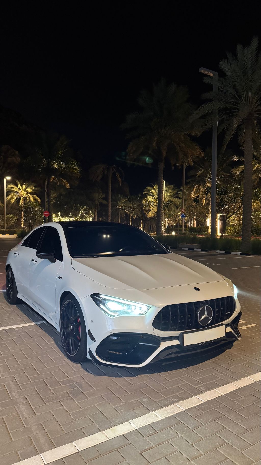 For sale: Mercedes CLA 45 AMG, GCC specs (Qurqash), full options, model 2021, mileage 140,000 km, first owner, no accidents, agency paint, major service done two weeks ago, ceramic coating applied. Asking price: 135,000 AED, negotiable within reason.