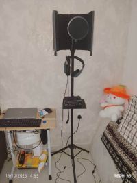 استاند واكوستك فوم وبوب فلتر ومايك sEA1 جودة رائعه مع ألاك 3 متر وكرت صوت (behringer) مخرجين الجيل الثاني وسماعة هيد فون بهرنجر الجيل الثاني سبب البيع محتاج فلوس ضروري