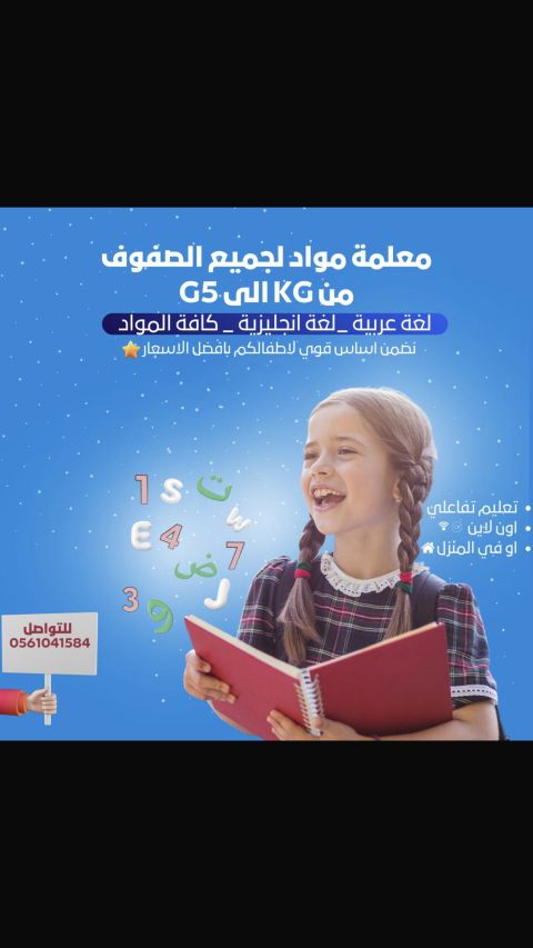 معلمة مواد لجميع الصفوف حتى أل G5 تعليم تفاعلي أون لاين أو في المنزل بأفضل الأسعار