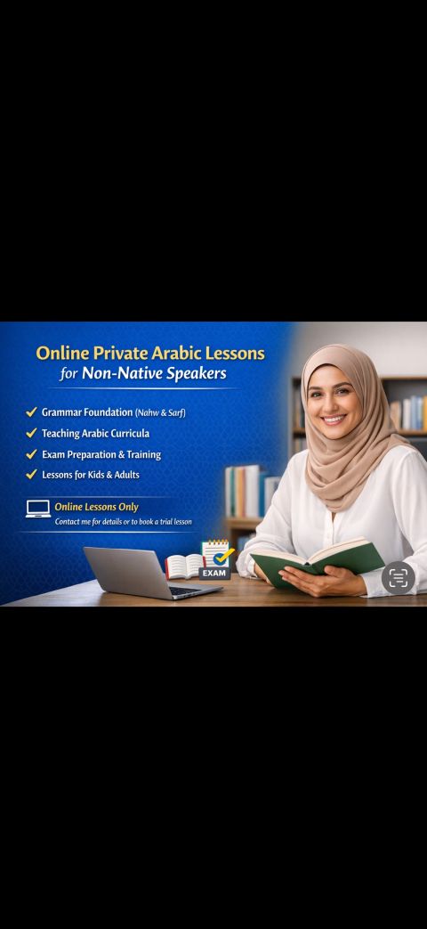 Online Arabic Tutor for Non - Native Speakers I am an experienced Arabic teacher offering online private lessons. My focus is on grammar foundation, curriculum - based teaching, and exam preparation. Long teaching experience Clear and structured lessons Complete exam training and practice Suitable for children and adults