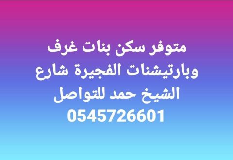 متوفر سكن بنات غرف وبارتشنات الفجيرة شارع الشيخ حمد