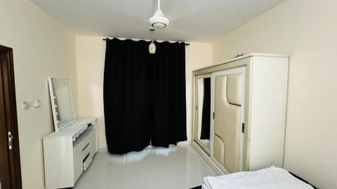 For monthly rent in Ajman, a super deluxe furnished room and lounge, second floor from the Corniche, before the ship roundabout, fully furnished for 3500 and a 500 refundable deposit. Studios and apartments are available annually and furnished in all areas