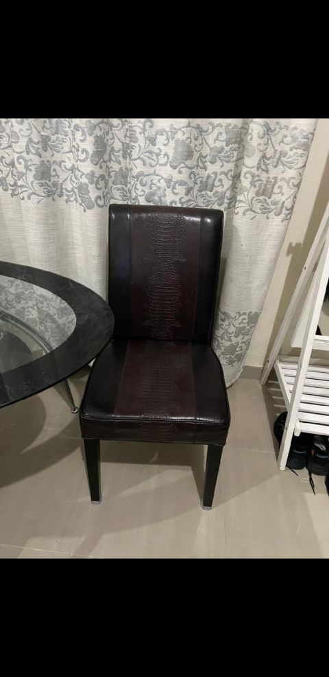 طاولة طعام زجاج إسباني مع كراسي جلد من محل ذا ون بحالة جيدة جدا للبيع بسعر رمزي لسرعة النقل في مدينة خليفة 170 درهم