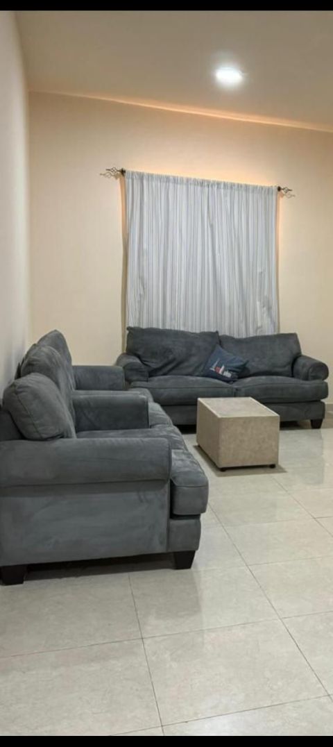 Sofa set AED150, two single beds (AED50 each) and other household items for sale. All items are almost new and in very good condition