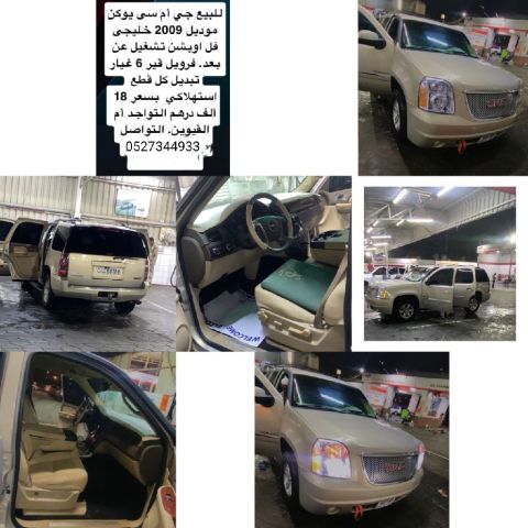 للبيع: جي إم سي يوكون موديل 2009، مواصفات خليجية، فل أوبشن، تشغيل عن بعد. دفع رباعي، ناقل حركة 6 سرعات. تم تبديل جميع القطع الاستهلاكية. السعر: 18,000 درهم. الموقع: أم القيوين. للتواصل والاستفسار.