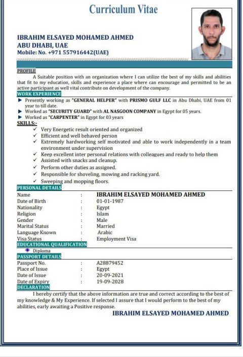 إبراهيم محمد مصري الجنسية. معي إقامة ولا مانع للعمل لدى الغير ابحث عن عمل حارس بفيلا أجيد الزراعة وتنسيق الزهور السن 50 عام